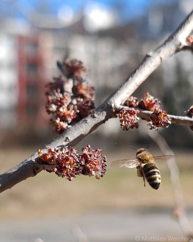 Windbestäubte, fremdländische Ahornarten (Acer) führen örtlich, vor allem im Siedlungsraum, zu geringem Pollenflug. Dort, wo der invasive Eschenahorn (Acer negundo) vorkommt und bereits zur Blüte schreitet (allenfalls ganz im Westen) ist auch mal mäßiger Ahornpollenflug denkbar. Im Verlauf der Vorhersagewoche dürften sich erste Eschen (Fraxinus) zum Stäuben bereitmachen. Dies betrifft allerdings nur das unmittelbare Umfeld des Rheins. Anderswo schlafen sich die Eschen durch die sonnigen Frühlingstage. Mit dem Südwind sind geringe Polleneinträge aus Regionen südlich der Alpen aber überall im Land möglich.